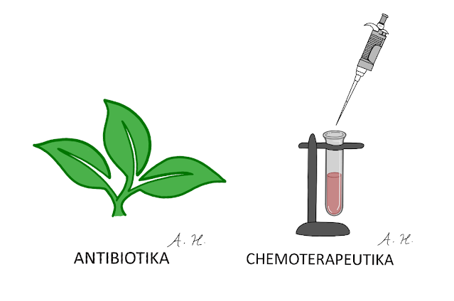 Antimikrobiální látky můžeme obecně rozdělit na antibiotika a chemoterapeutika. Termín „antibiotikum“ byl dříve používaný pouze pro antimikrobiální látky přírodního původu (látky původně produkované mikroorganismy) a naopak „chemoterapeutika“ pro syntetické antimikrobiální látky. Dnes se ovšem velmi často termín „antibiotika“ používá bez ohledu na původ látky.