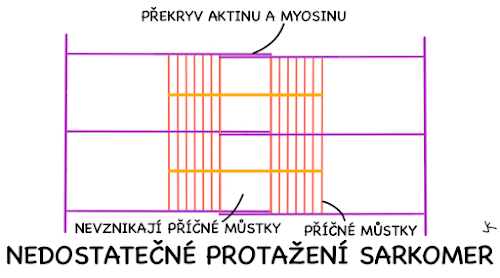 Obvykle má sarkomera nějakou velikost, která se často uvádí jako 2 mikrometry. Zůstaneme tedy u toho. Řekněme, že je to výchozí délka svalu. Aktin a myozin se částečně překrývají a v těchto místech se tedy netvoří příčné můstky. Srdce dělá kontrakci, které však nevěnuje maximální sílu. Má ještě rezervu a jede tak na pohodičku.