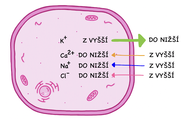 3) Různá propustnost membrány pro různé ionty – některé jednoduše pouští víc a některé míň. Asi má své oblíbence.